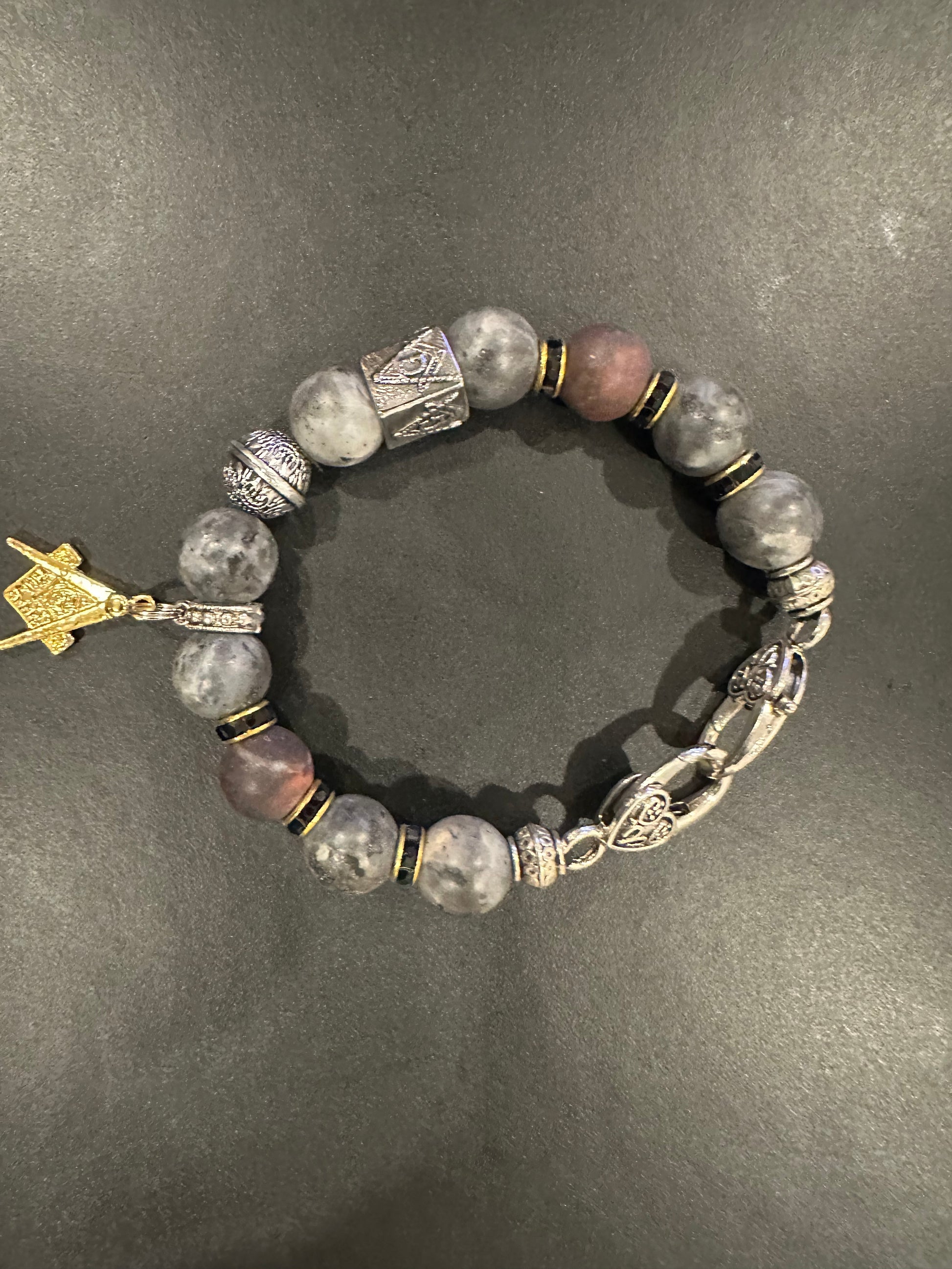 Step up your accessory game with this majestic gemstone bracelet! Featuring a captivating blend of smoky gray and deep plum beads, this bracelet is accented with ornate silver spacers and hints of gold for a truly regal look. The intricate silver detailing and unique gold charm add a touch of sophistication and mystery, making this piece a true conversation starter. Whether you’re dressing up for a special occasion or adding a bold statement to your everyday style, this bracelet is designed to turn heads and showcase your individuality. Embrace elegance and power—make this one-of-a-kind bracelet yours today!